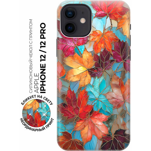 Силиконовый чехол на Apple iPhone 12 / 12 Pro с принтом "Осенняя симфония в витражном исполнении"
