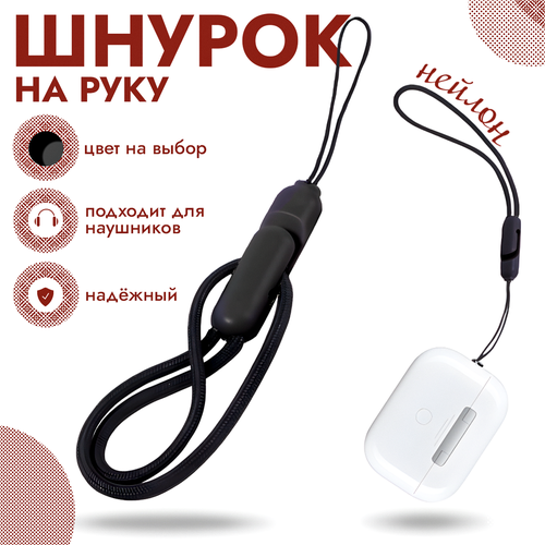 Универсальный нейлоновый шнурок с карабином на руку для телефонов и наушников чёрный, шнурок-петля на руку