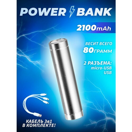 Внешний аккумулятор Олдбери, арт. PB10, 2100mAh, серебро 1шт