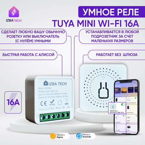 Умное WI-FI реле для Алисы Tuya Mini на 16А