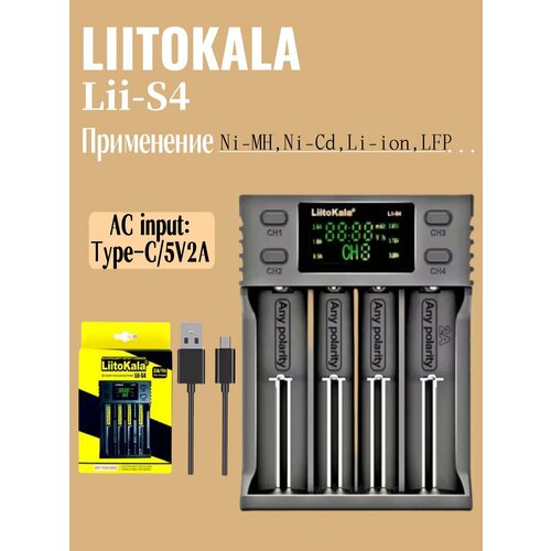 Зарядное устройство LiitoKala Lii-S4 18650 со светодиодом, 4 слота для 26650 21700 18350 AAA 3,7 В 1,2 В