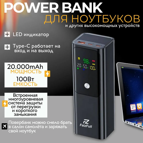 Powerbank 100Вт(W) 20000mAh Li-Pol/Портативный аккумулятор для ноутбука, смартфона 100Вт 20000мАч/FLY124