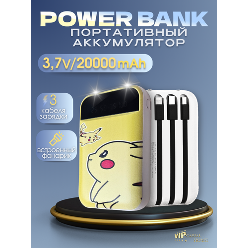 Портативный аккумулятор, Power Bank, с фонариком и зарядкой трех устройств, желтый, 20000mAh