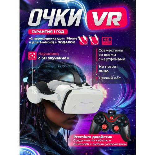 VR-очки Asthetik, для смартфона, джойстик, наушники, кабели type-c и lightning, белые