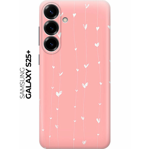 Силиконовый чехол на Samsung Galaxy S25+ с принтом "Сердечки на розовом фоне"