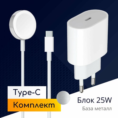 Комплект: зарядка для Apple Watch с металлической базой (USB-C, 1 метр) + блок питания (25 Вт) / Original Drop