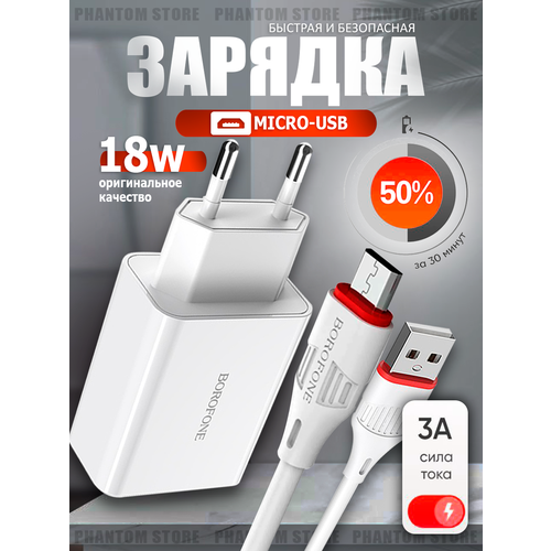 Зарядное устройство для телефона адаптер 18W - 18 вт ( Быстрая зарядка Micro-usb ) за 30 минут 50%
