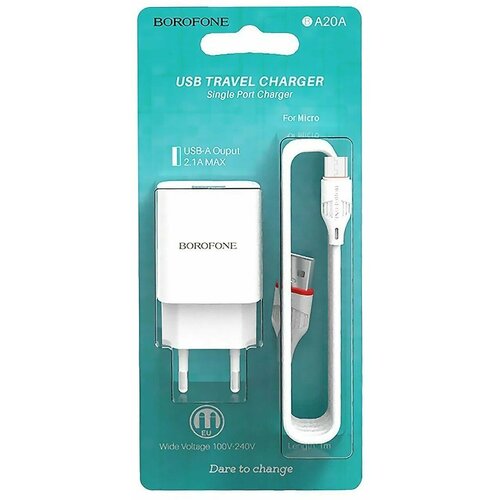 Сетевое зарядное устройство Borofone BA19A Nimble + кабель microUSB, Global, white