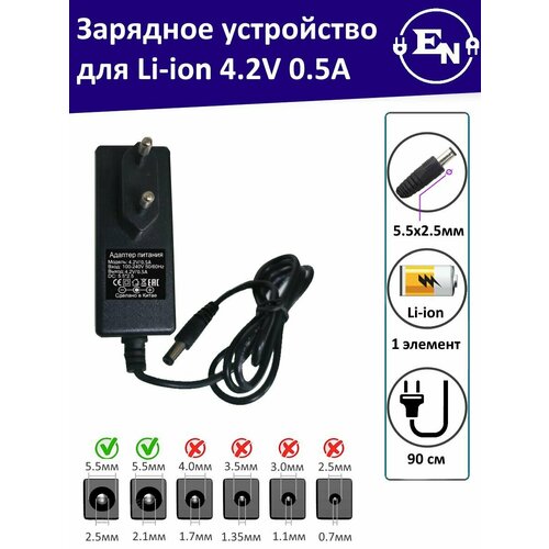 Зарядное устройство для литий-ионных аккумуляторов 4,2V 0.5A (5.5х2.5) на 1 элемент (1S)