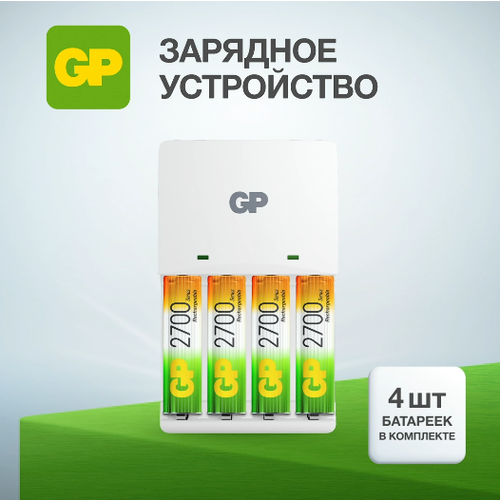 Зарядное устройство GP для аккумуляторных батареек АА и ААА на 4 слота, с аккумуляторами AA 2700 mAh NiMH, набор 4 шт