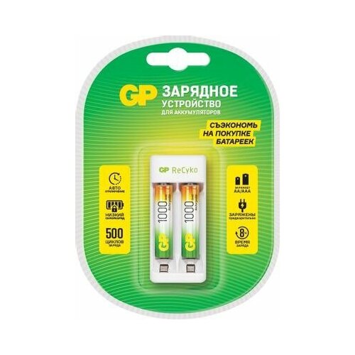 Зарядное устройство GP KB01CS-2CR1 для аккумуляторных батареек АА и ААА, аккумуляторов