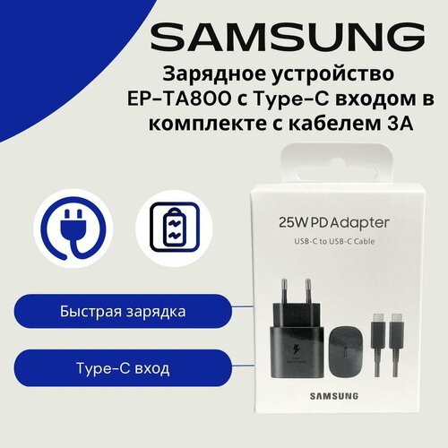 Сетевое зарядное устройство для Samsung EP-TA800 с Type-C входом в комплекте с кабелем 3A. Цвет:.
