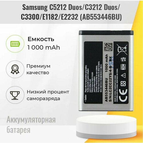 Samsung C5212 Duos/C3212 Duos/C3300/E1182/E2232 - аккумулятор, маркировка AB553446BU