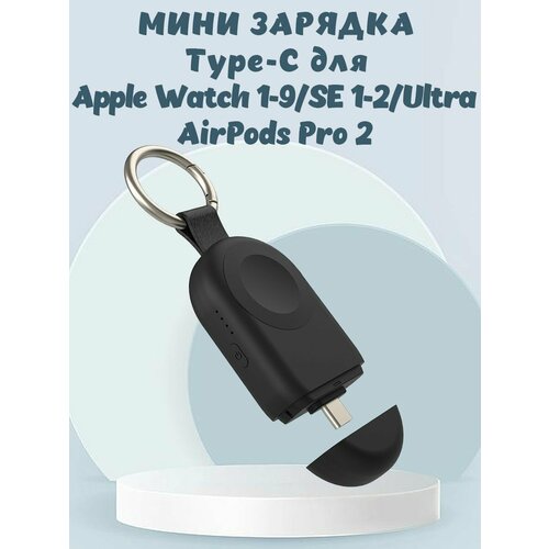 Портативная мини зарядка Type-C для Apple Watch и AirPods - черная