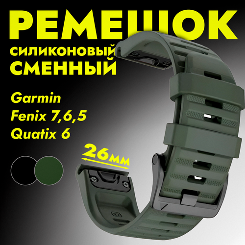 Ремешок для Garmin Fenix 7, 6, 5, Quatix 6, 26 мм хаки / Силиконовый ремешок для Гармин феникс 7,6,5 QuickStrap