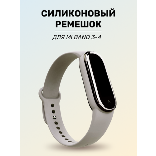 Силиконовый ремешок для фитнес трекера Xiaomi Mi Band 3 и Mi Band 4 / Сменный браслет для умных смарт часов Сяоми Ми Бэнд 3 и Ми Бэнд 4 / Каменный-серый