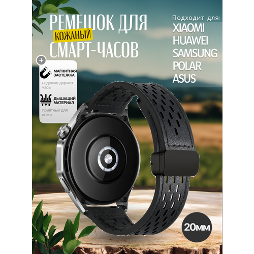 Кожаный ремешок 20мм для Huawei watch gt 4, Galaxy Watch