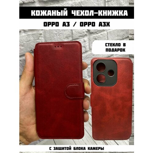 Кожаный чехол книжка для Oppo A3 / A3X бордовый