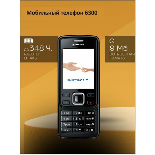 Кнопочный телефон "Nok" 6300 Classic, Черный Black, металлический корпус, русская клавиатура