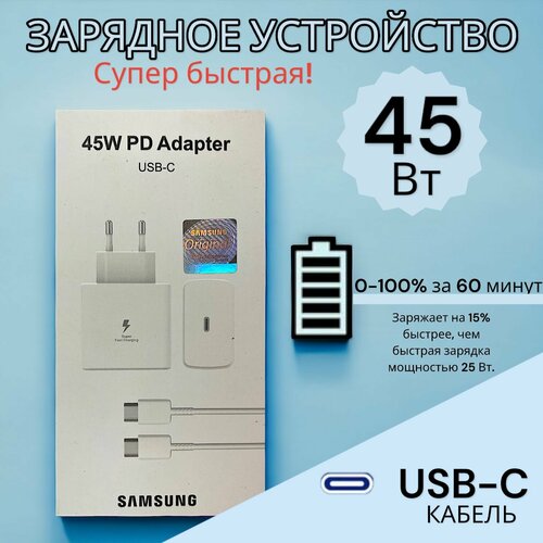 Зарядное устройство для Samsung 45W+кабель Type C / Сверхбыстрая зарядка SUPER FAST CHARGING