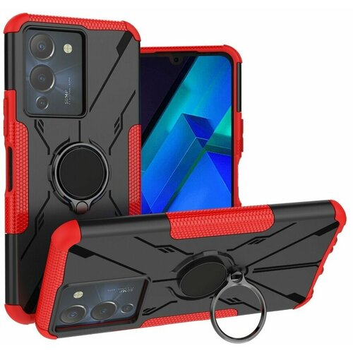 Чехол Armor Shockproof Ring Holder для Infinix NOTE 12 G96 (черный + красный)