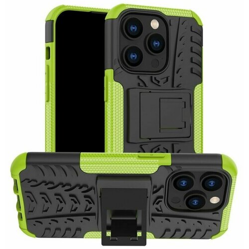 Чехол Hybrid Armor для iPhone 14 Pro (черный + зеленый)