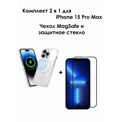 Комплект 2 в 1/ Чехол с MagSafe зарядкой для IPhone 15 Pro Max Ultra c защитным стекло в комплекте