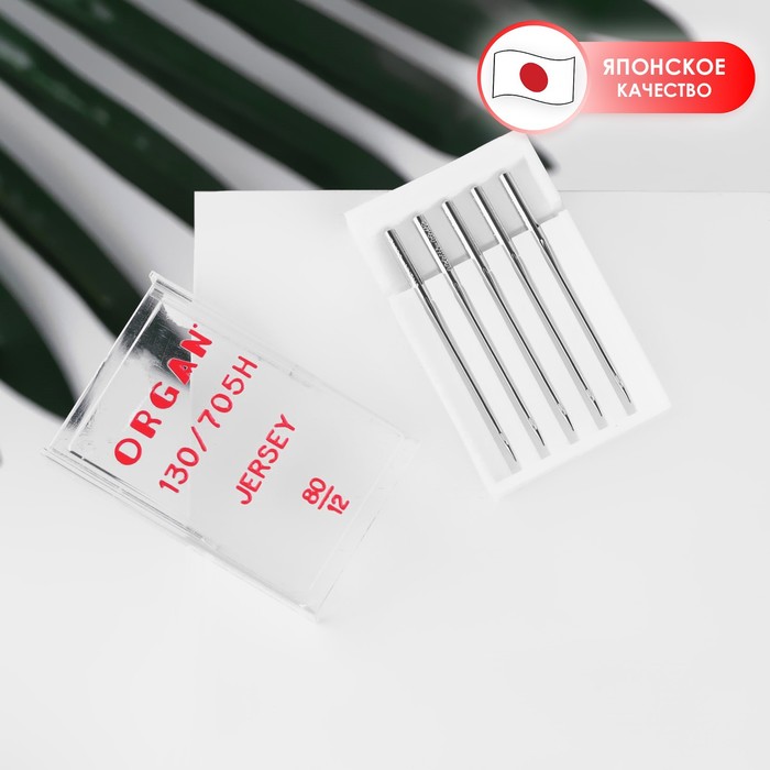 Иглы для швейной машины ORGAN бытовой, для джерси, 5 шт, в пенале, № 80 100059377174
