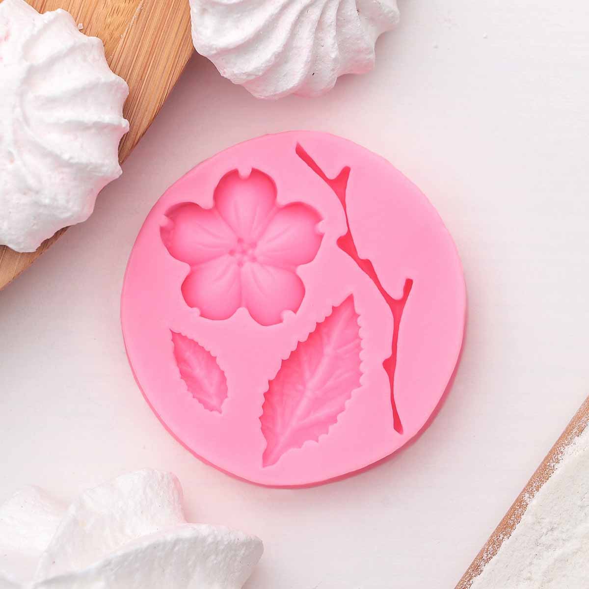 2581360 Молд силикон для свечей/мыла/смолы/гипса/кондитер 5,5х0,9см Цветок лист и веточка 100042885249