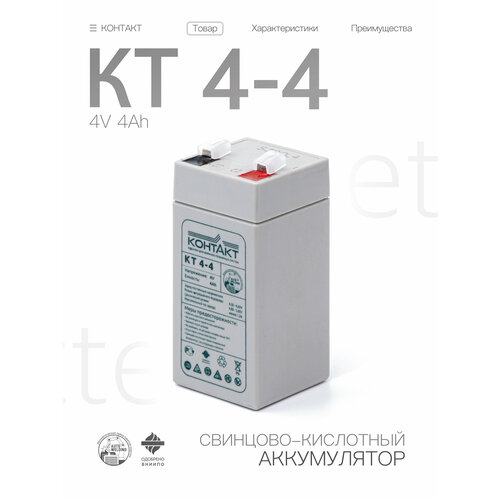 Аккумулятор (батарея) Контакт КТ 4-4 (4В 4Ач / 4V 4AH)