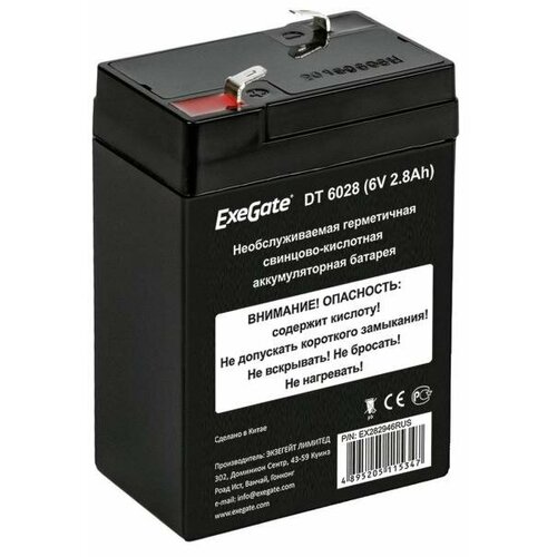 Exegate EX282946RUS Exegate EX282946RUS Аккумуляторная батарея ExeGate DT 6028 (6V 2.8Ah), клеммы F1