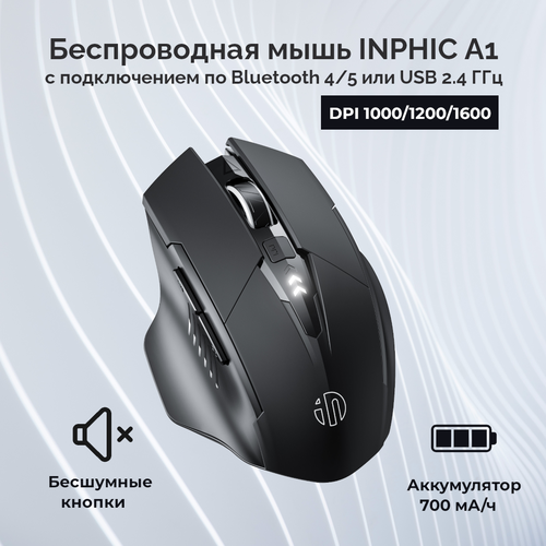 Беспроводная оптическая мышь Inphic A1 с аккумулятором 700 мА/ч и подключением по Bluetooth 4.0/5.0 + USB 2.4 ГГц