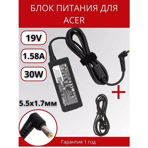 Зарядное устройство (блок питания/зарядка) ADS-40NP-19-1 для монитора и телевизора LCD 19В, 1.58А, 30Вт, 5.5x3.0+pin