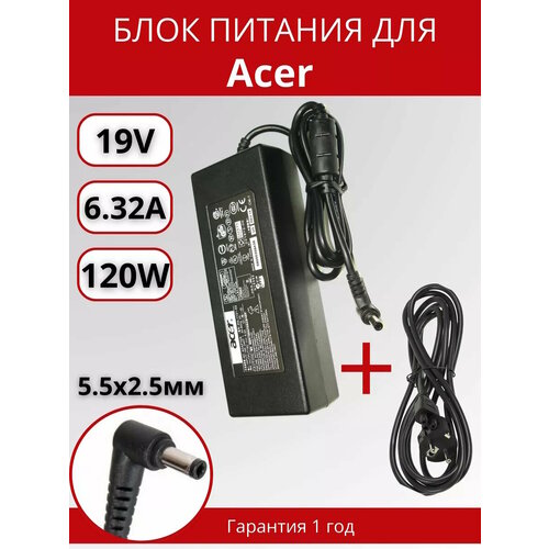 Блок питания для ноутбука Acer 5.5x2.5мм, 120W (19V, 6.3A) с сетевым кабелем, ORG