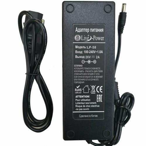 Блок питания 26V 2A 52W (5.5x.2.5) с сетевым кабелем в комплекте