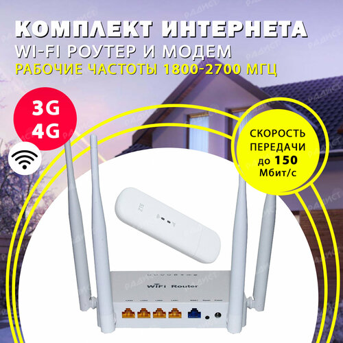 Комплект приема интернета usb модем Huawei E3372M smart с антенной GSM/3G/4G с роутером ZBT WE 1626