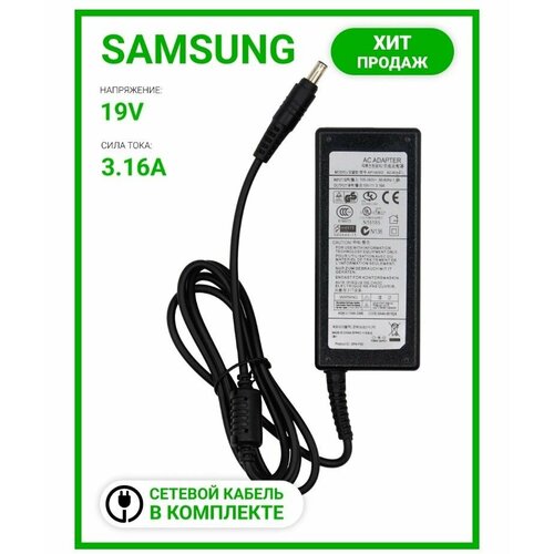Блок питания для ноутбука Samsung 19V / 3.16A / 60W 5.5x3 с иглой / зарядное устройство для Samsung NP300 Series / r400 / r500 series 530U4C 530U4B