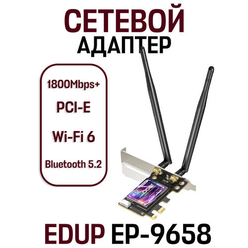 Двухдиапазонный сетевой адаптер, сетевая PCI карта Express EDUP 1800Mbps+ Wi-Fi 6 Bluetooth 5.2 (EP-9658)