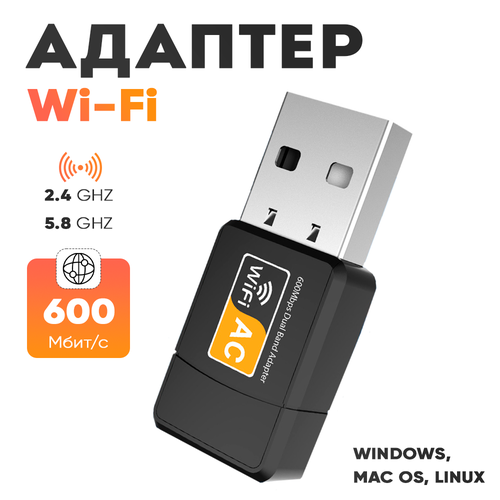 WiFi USB Адаптер AC 600M 2,4 Ггц, 5 Ггц до 600 Мбит/с (433 + 150 Мбит/с) RTL8811 для компьютеров, 802.11b/g/n / Вайфай адаптер для ПК, Беспроводной приемник для компьютера