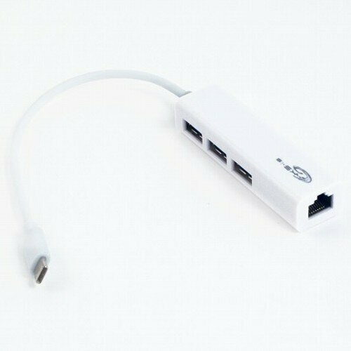 Сетевая карта RJ-45 KS-is KS-339 USB2.0 Type-C на LAN Ethernet кабель адаптер плюс хаб три порта RTL8152B - белая
