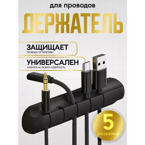 Держатель для проводов и зарядных устройств, органайзер для проводов, крепление для кабелей на скотче 5 разъемов.