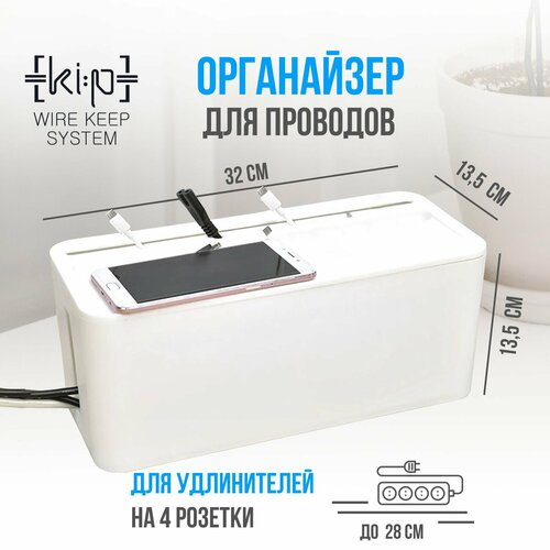 Коробка, органайзер для проводов, средний (32х13,5х13), короб для маскировки сетевых кабелей и шнуров для зарядки