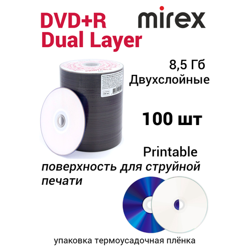 Диски Mirex DVD+R Dual Layer Shrink Bulk (100 шт.) 8.5Gb 8x, Ink Printable (UL130069A8T)