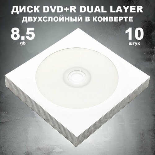 Диск DVD+R двухслойный 8.5GB 8x в конверте, 10 штук / Болванка DVD+R DL Dual Layer (Double Layer) CMC