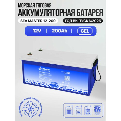 Тяговый аккумулятор One-sun Sea Master GEL 12В 200Ач аккумулятор для лодки, мотора, 1 шт.