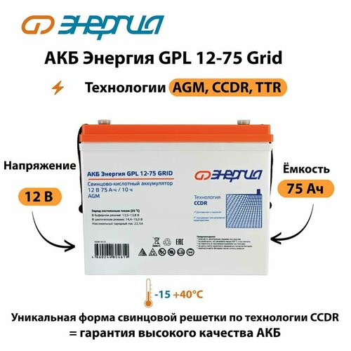 Тяговый аккумулятор One-sun Sea Master GEL 12В 75Ач аккумулятор для лодки, мотора, 1 шт.