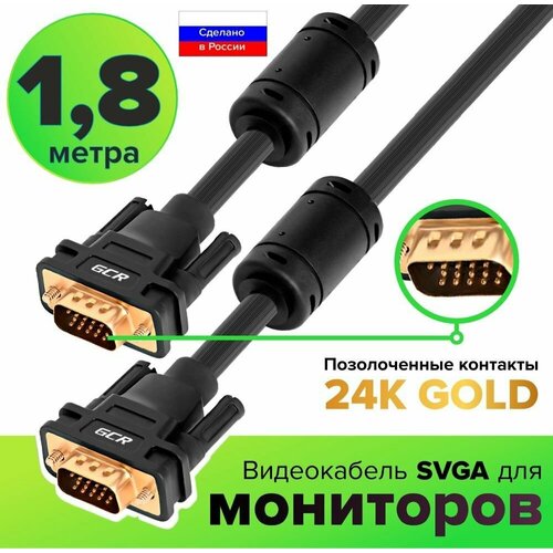 GCR Кабель SVGA 1.8 м чёрный позолоченные контакты ферритовые кольца OD8 мм 15 м 15 м Pre мiu м 28 28 AWG двойной экран