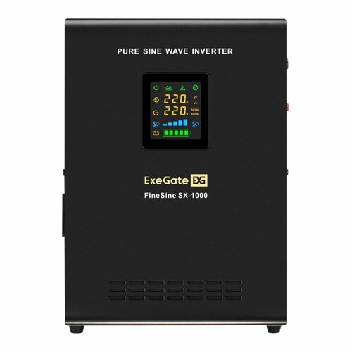 Инвертор ExeGate FineSine SX-1000/HR 12-65 (12В, 65Ач) 1000 В·А, EURO, розеток - 2 (EX296549RUS) (в комплекте внешний аккумулятор)