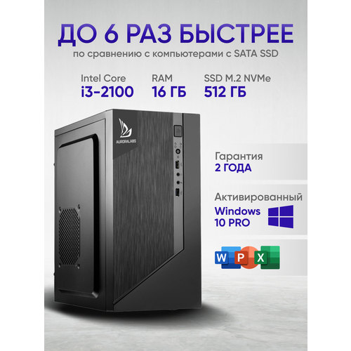 Системный блок / Компьютер / ПК (Intel Core i3-2100 (3.1 ГГц), RAM 16 ГБ, SSD 512ГБ, Windows 10), чёрный