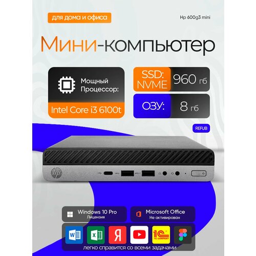 Мини компьютер системный блок пк HP 600g3 i3 6100t 8 gb 960 gb nvme